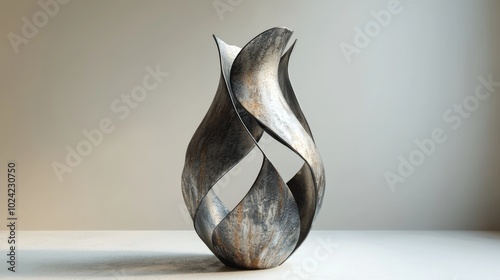 a vase in an industrial style made out of metal with abstract floating lines