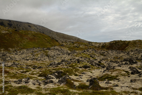 A vast field of vibrant green moss covering the land in Iceland