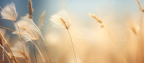 A vast field with tall green grass growing in the center under the clear blue sky, creating a serene and peaceful natural landscape