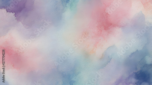 A vector background featuring a soft pastel watercolor texture, blending blue, pink, and purple hues to create a dreamy and romantic effect.