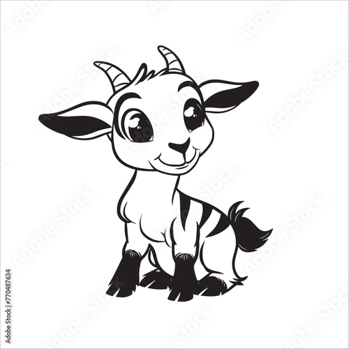 A vector illustration of a black and white Goat sitting