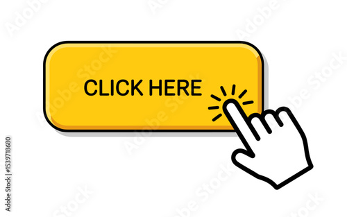 A Vector Illustration of a Bright Yellow Click Here Button with Cursor