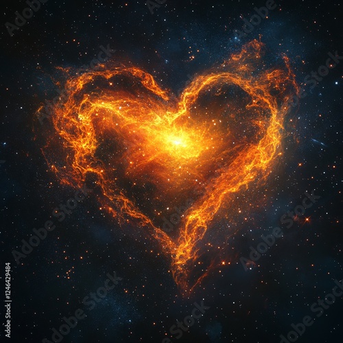 A vector illustration of a heart-shaped nebula glowing in deep space, surrounded by twinkling stars.