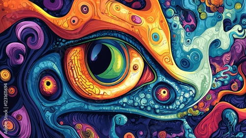 A vector illustration of a psychedelic frog skin texture with surreal swirling patterns in bright colors.