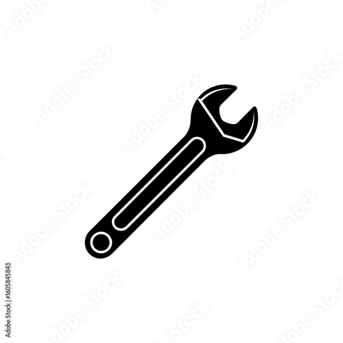 A vector illustration of a wrench with a minimalist style and sharp lines. Suitable for logos for technicians, spare parts, or industrial equipment services.