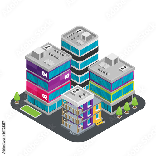 A vector illustration of modern art office building. Isometric Office set