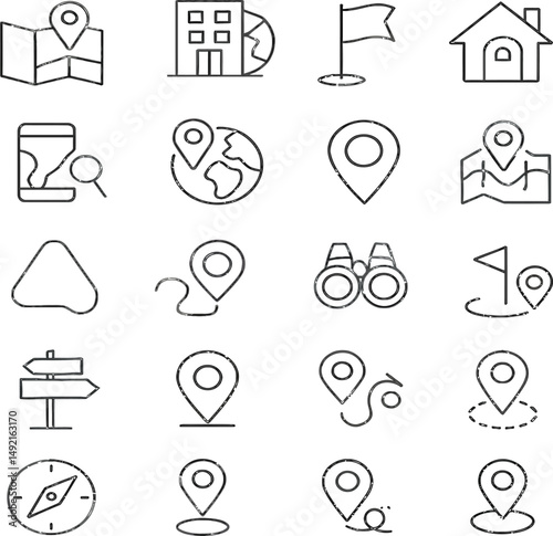A vector set of black web design icons features symbols for business, music, internet, and love