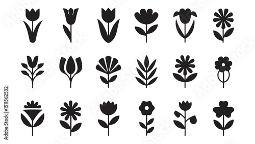 A vector set of floral silhouettes perfect for nature-inspired design, tattoo patterns, or decorative elements