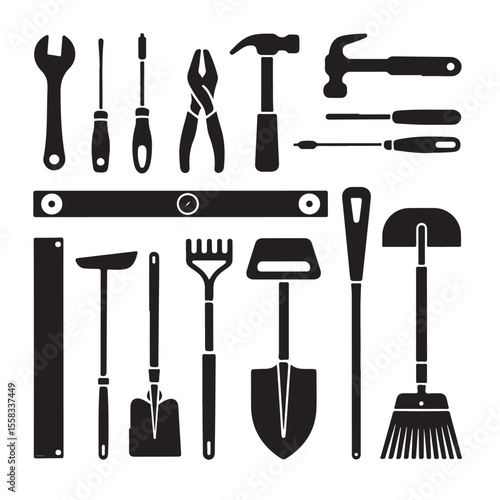 A versatile vector collection of construction tools, including hammer, screwdriver, wrench, saw, and pliers, perfect for repair and building projects