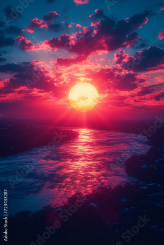 A vertical photo of a sunset or sunrise, capturing the vertical gradation of colors. Concept of sunrise/sunset photography optimized for vertical display. Generative Ai.