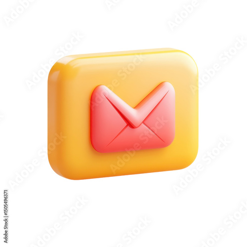 A vibrant 3D email icon in a sunny orange square symbolizing digital on transparent background