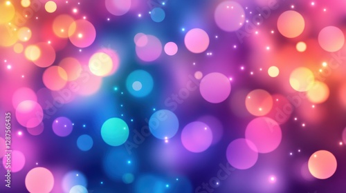 A vibrant abstract background featuring colorful bokeh circles in shades of blue, pink, and purple, creating a dreamy, festive atmosphere.