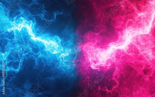 A vibrant abstract background featuring electric blue and pink lightning-like patterns, creating a dynamic and energetic visual effect.
