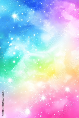 A vibrant abstract background featuring swirling hues of blue, pink, green, and yellow, scattered with sparkling stars, Ideal for use in creative projects, presentations, or digital art,
