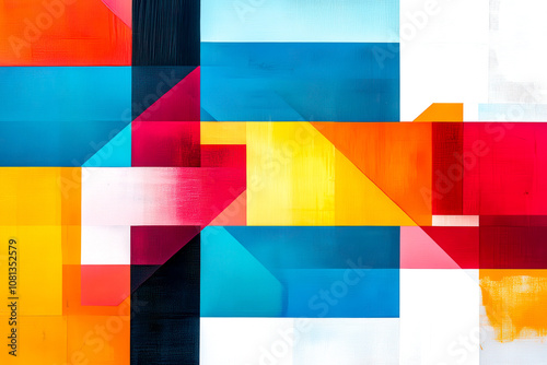 A vibrant abstract composition featuring geometric shapes in various colors, creating a dynamic and modern visual experience.