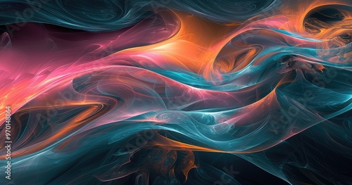 A vibrant abstract composition showcasing swirling colors and dynamic patterns, evoking a sense of movement and energy.