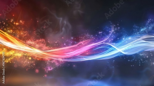 A vibrant abstract design featuring flowing colors and light effects.