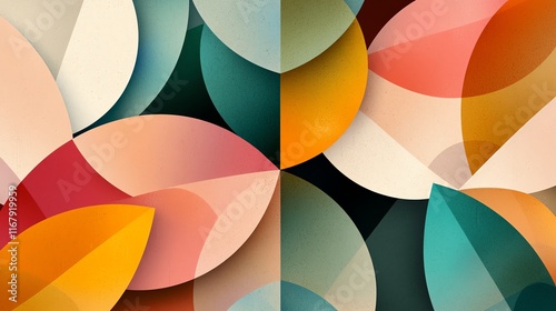 A vibrant, abstract design featuring layered shapes and a harmonious blend of colors, creating a visually engaging composition.
