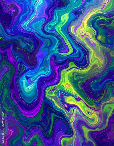 A vibrant abstract design showcasing swirling patterns of bright, bold colors.