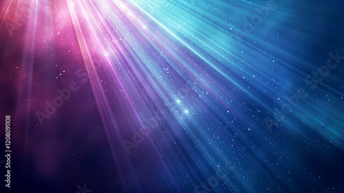 A vibrant abstract image featuring colorful light rays in shades of blue and pink, creating a celestial and ethereal atmosphere.