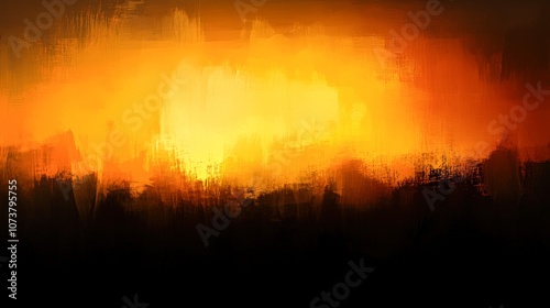 A vibrant abstract painting featuring warm hues of orange and yellow blending with dark shades, perfect for backgrounds in design projects, marketing materials, or as a decorative piece,