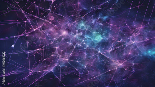 A vibrant abstract representation of interconnected networks and cosmic elements.