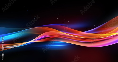 A vibrant abstract wave design featuring colorful light trails on a dark background.