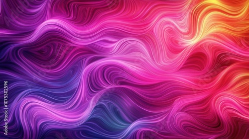 A vibrant abstract wave in shades of pink, purple, and orange creates a fluid, dynamic pattern.