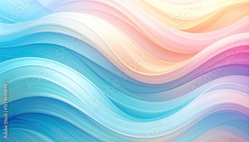 A vibrant abstract wave pattern with flowing colors of blue, pink, and soft pastels.