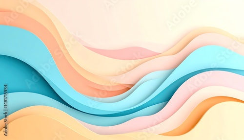 A vibrant, abstract wave pattern with soft pastel colors creating a sense of flow and movement