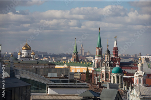 A vibrant and bustling cityscape featuring a plethora of buildings, fascinating architecture, domes, and soaring towers that define the skyline