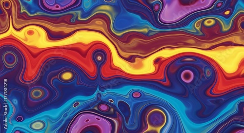A vibrant and colorful abstract background with swirling psychedelic liquid paint patterns and textures.