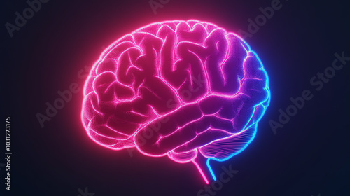 A vibrant and colorful neon brain illustration, showcasing intricate neural pathways in pink and blue against a dark background, representing creativity and intellect.