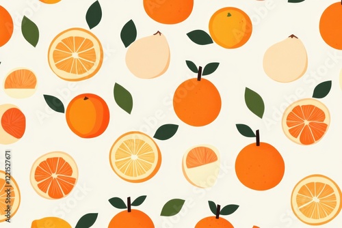 A vibrant and colorful pattern featuring oranges and lemons on a white background, great for various design projects