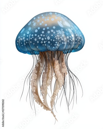 A vibrant and detailed illustration of a jellyfish, showcasing its translucent body and flowing tentacles in stunning blue hues.