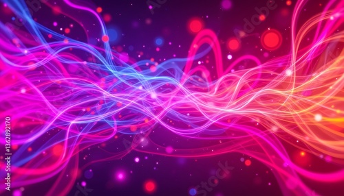 A vibrant and eye catching abstract neon color dynamic background featuring a mix of glowing pink, blue, and orange swirls and lines, creating a mesmerizing and modern aesthetic.