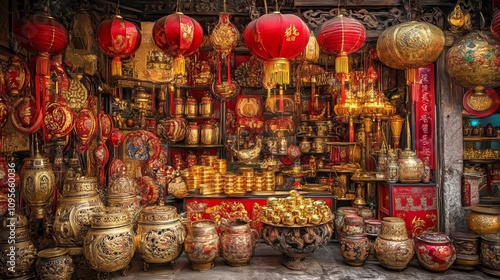 A vibrant and festive stock photo featuring elements of Chinese New Year celebrations.