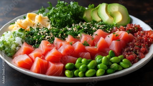 A vibrant and fresh seafood bowl featuring assorted ingredients for a healthy meal