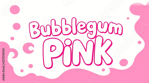 A vibrant and playful illustration featuring a stylized, bold font with the words Bubblegum Pink in the titular color #FF69B4 set against a soft creamy white background