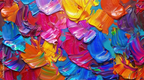 A vibrant and textured pattern created by multicolored, abstract oil brushstrokes, applied thickly with a knife for a seamless, lively background.