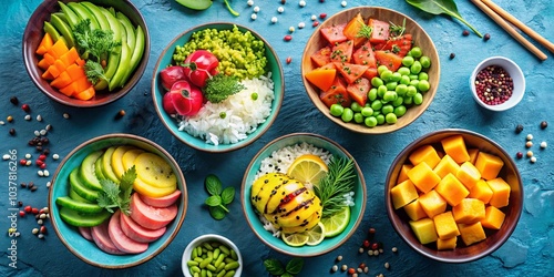 A Vibrant Array of Colorful Bowls Filled with Fresh and Diverse Ingredients, Perfectly Balanced for a Delicious and Healthy Meal