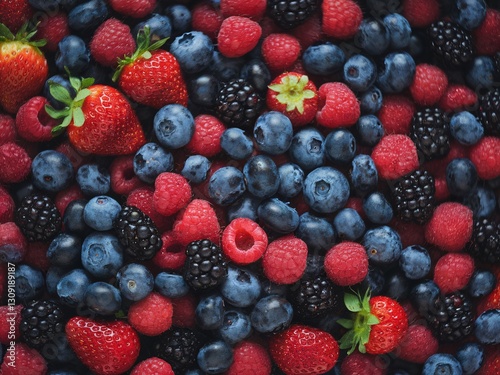 A vibrant array of mixed berries including strawberries, blueberries, raspberries, and blackberries.
