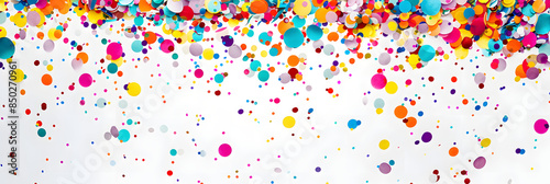 A vibrant assortment of confetti scattered against a pristine white backdrop leaving ample space for additional images or text