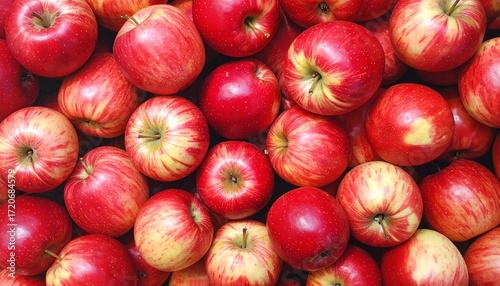 A vibrant background made entirely of fresh red apples arranged closely together. The apples are glossy, ripe, and richly colored, creating a seamless texture that fills the frame.