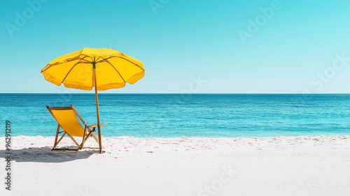 A vibrant beach umbrella standing tall on a sandy shore, offering shade and comfort under the warm summer sun.