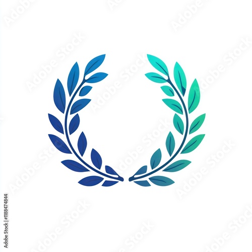 A vibrant blue and green laurel wreath design