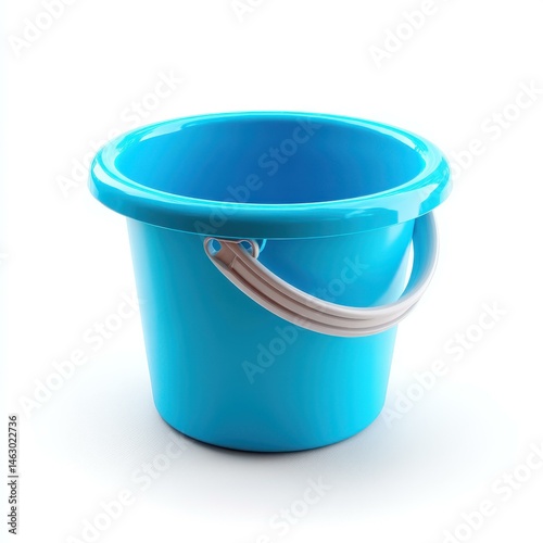 A vibrant blue bucket icon, designed in a realistic 3D style, perfect for adding charm to any cartoonthemed project.