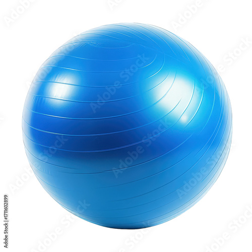 A vibrant blue exercise ball isolated on transparent background, perfect for fitness, yoga, and core strengthening, promoting balance, posture, and overall wellbeing
