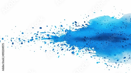 A vibrant blue watercolor splash stands out against a crisp white background, perfect for artistic designs or backgrounds.