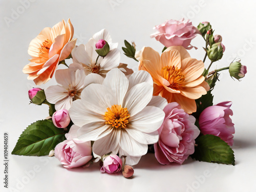 A vibrant bouquet of flowers beautifully arranged on a white background.